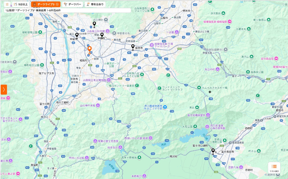 山梨県内のダーツライブ3設置店は6店舗。