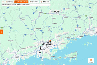 県庁所在地の岡山市(7店舗)と、お隣の倉敷市(6店舗)、そして内陸部の津山市(2店舗)。