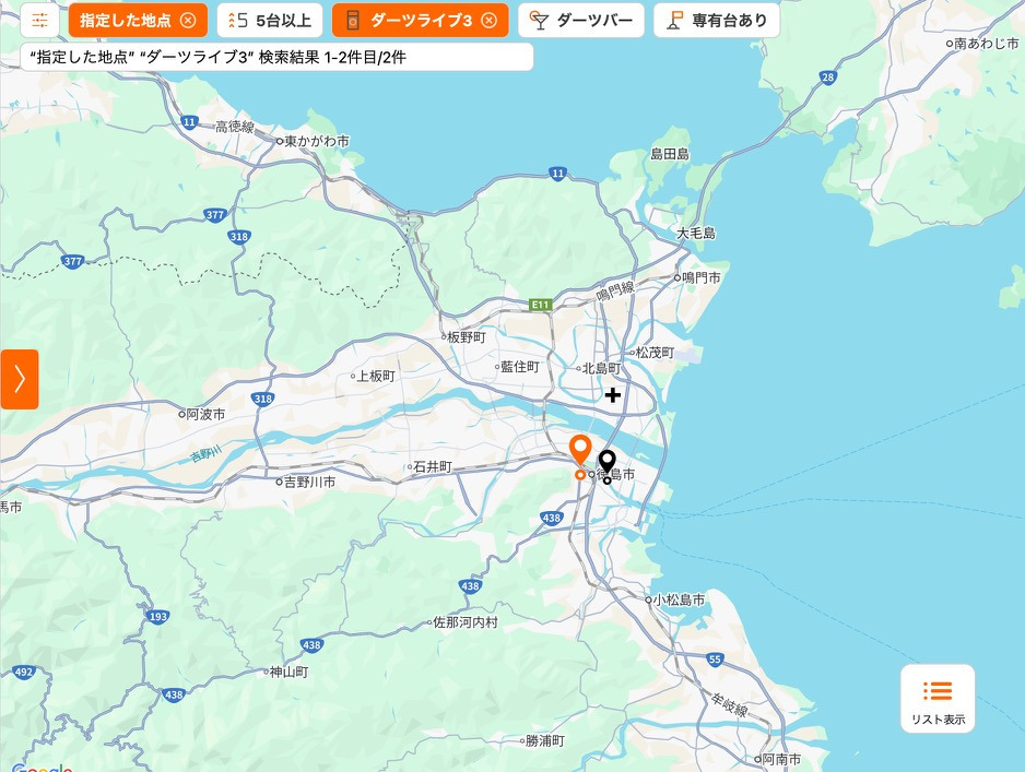 徳島県内のダーツライブ3設置店は2店舗。
